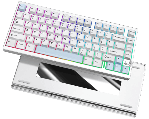 Selon la version, il est livré avec des switches linéaires Creamy Jade ou tactiles Milk Blue, tous hot-swappable (3/5 broches). Le poids d’environ 1 kg assure une bonne stabilité sur le bureau.