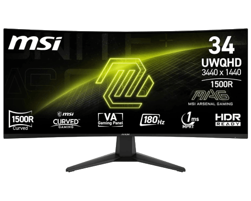 Le MSI MAG 346CQ mise sur la simplicité et la performance. Sa dalle VA incurvée de 34 pouces (1500R) en 3440×1440 offre un excellent confort visuel, et son taux de rafraîchissement de 180 Hz garantit une fluidité remarquable.