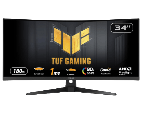 L’Asus VG34VQ3B combine une dalle VA incurvée de 34 pouces, une définition 3440×1440 et un taux de rafraîchissement de 180 Hz pour une expérience fluide et réactive.